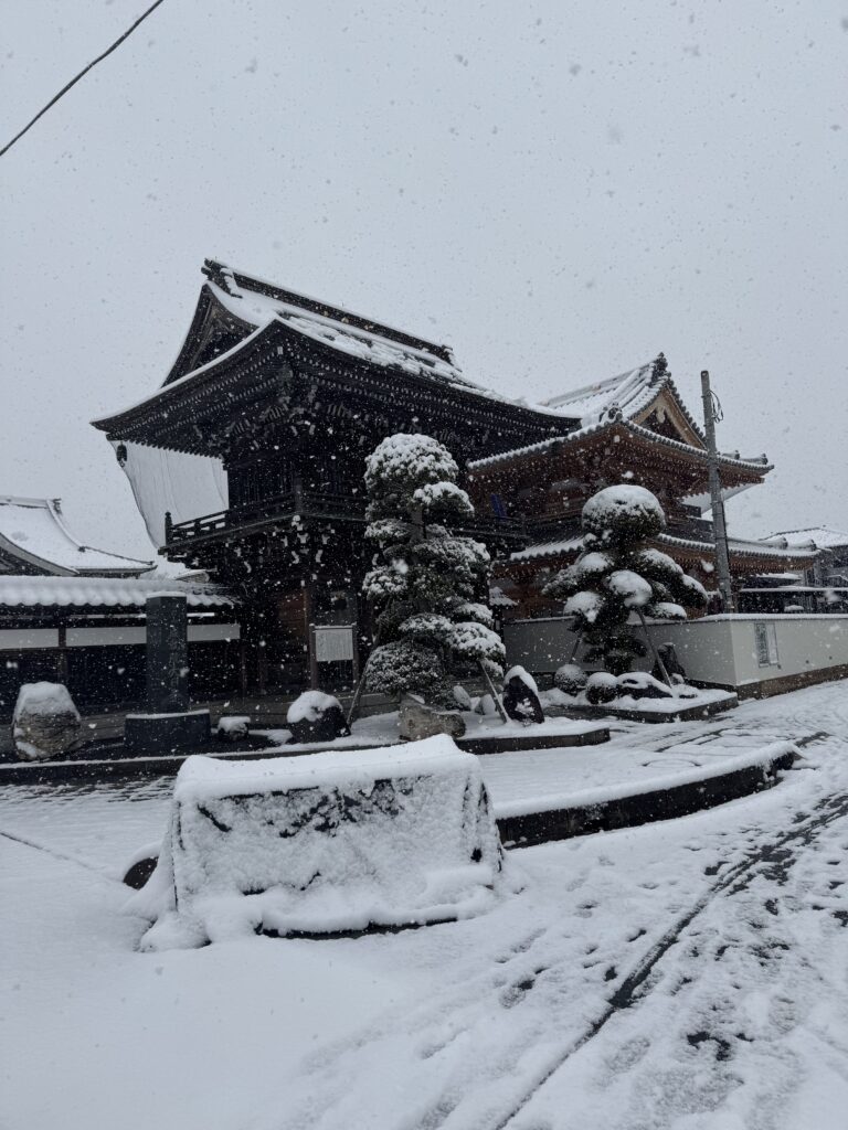 外に出てみると銀世界。雪化粧の伽藍も良いもんだと思いました。
